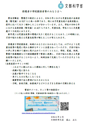 文部科学大臣メッセージ 保護者や学校関係者等のみなさまへ 令和6年2月