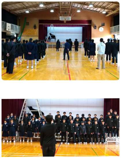 体育館で卒業式の歌の練習 3月4日(月)4時間目
