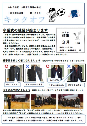 1年生学年通信 第187号(卒業式の練習が始まります)