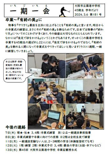 3年学年だより 45期生181号(3・6)(卒業〜『有終の美』に)