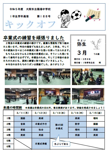 1年生学年通信 第188号(卒業式の練習を頑張りました)