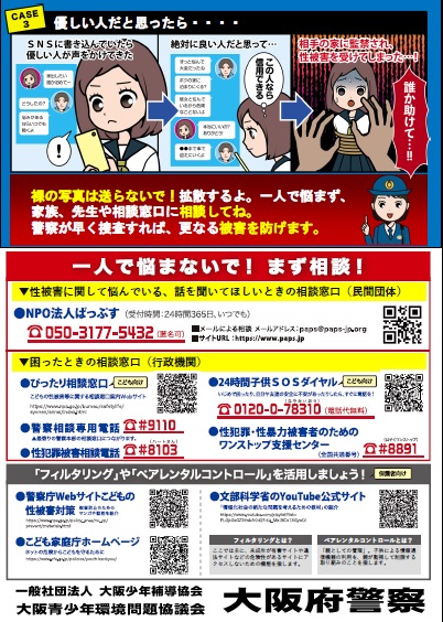 ネットには危険がいっぱい!(SNS被害防止啓発チラシ【カラー両面】)大阪府警察本部より