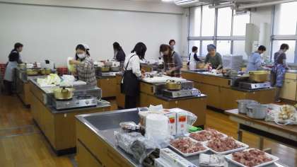 文化祭当日、朝8時30分、学校元気アップのみなさんと、PTAのみなさんが調理室に大集合!