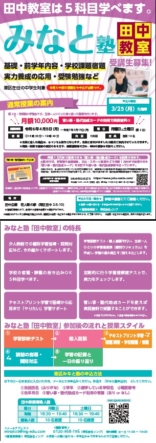 みなと塾(市岡東中・港南中・市岡中教室&田中教室)について 港区役所より