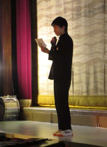 生徒会長の宮越君のあいさつ、文化祭委員長の末冨君の鑑賞上の注意が続きます。