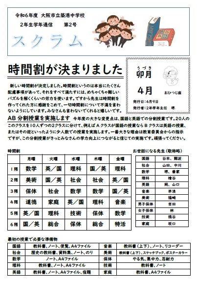 2年生 学年通信 2号