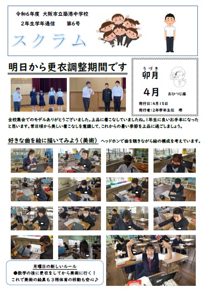 2年生学年通信スクラム第6号は明日からの更衣調整機関についてです。
