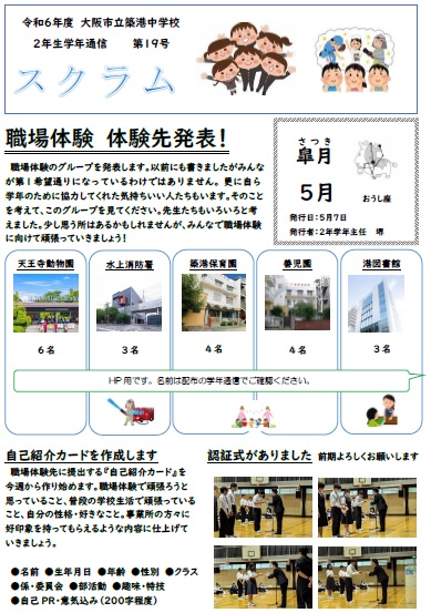 2年生学年通信スクラム第19号は、職場体験学習の体験先発表です。