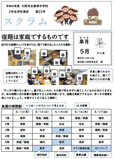 2年生学年通信スクラム第22号は、来週の時間割です。