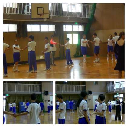 始めは、男女が向かい合って踊るのも恥ずかしかったようですが、次第に慣れてきて途中からは自然に手をつないで踊れるようになりました。特に、「男子が女子をエスコートをするのがマナー」ということから、男子がリードをとるように教わったので、パートナーチェンジの度に男子から手を差し出すようになりました。
