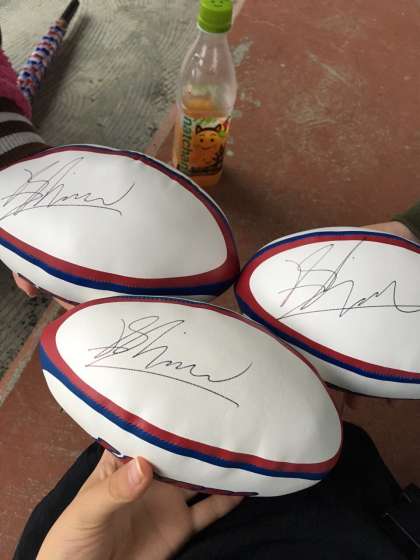 ※試合後、樫本選手が生徒たちに気づいてくれ、選手たちと生徒の交流ができ、本当は、もらうことができないサインボールも生徒に一つずつ頂きました!!