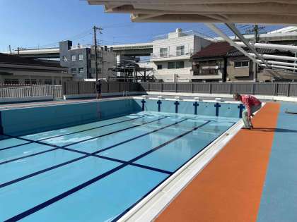 先日、プールの清掃がありました。業者の方に来ていただき何時間もかけて綺麗にしていただきました。
