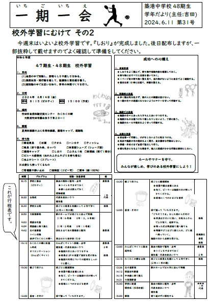1年生学年通信一期一会第31号はいよいよ金曜日にせまった、校外学習に向けてその2です。