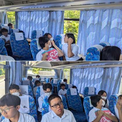 バスレクが終了し、バスの中を楽しく過ごしています。