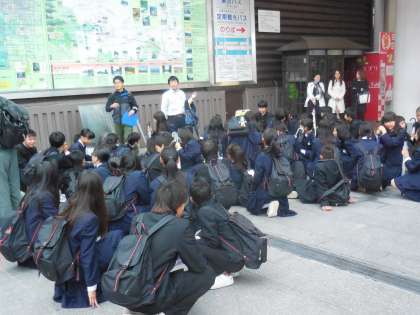 11月18日(水)、2年生は奈良へ校外学習に行ってきました。クラス単位で電車を乗り継いで奈良へ向かい、奈良公園で班ごとに自由散策、そしてみんなで東大寺に参拝し帰校する予定です。電車でのマナーについては、事前学習でしっかりと学びました。それもあって、整列乗車・乗車時のマナーなど、先生たちに注意されることなく無事に奈良に到着しました。
