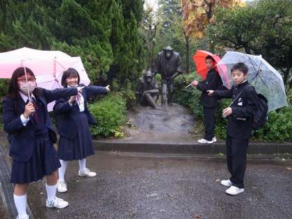 動物園での様子です。あいにくの雨でしたが、園内は空いていて班ごとに色々なミッションを探したり、動物の生態に驚きの歓声を上げていました。