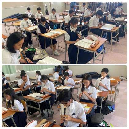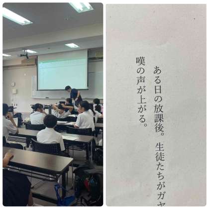 リコーダーの練習、作品の作成、セリフの担当決めに取り組みました。