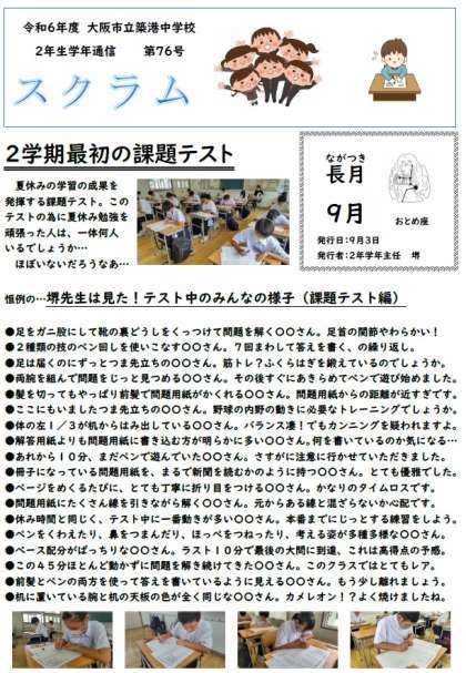 2年生学年通信スクラム第76号は、本日のテストの様子です。