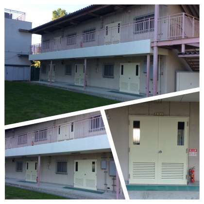 芝生広場の横にある部室棟、出入り口の扉がかなり傷んでいました。そこで、管理作業員の瀧岡さんが1週間かけて塗装していただき、本日美しく仕上がりました。