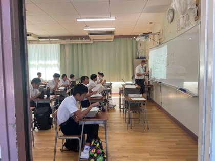 受験をイメージしながら、問題を解き、解説を聞きます。