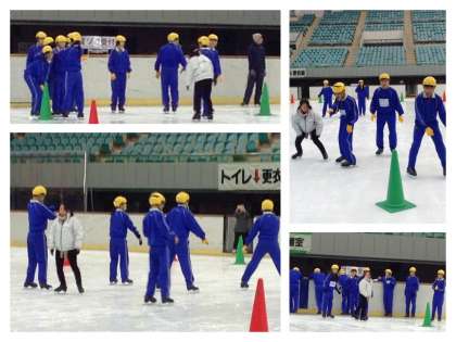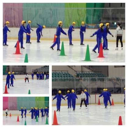 大阪プールスケートリンク到着、スケート靴を履き準備運動からリンク入場まで、さすが2年生!スムーズな行動です。講習中も熱心に滑っていて、どんどん上達するのがリンクの外からでもわかりました。