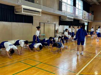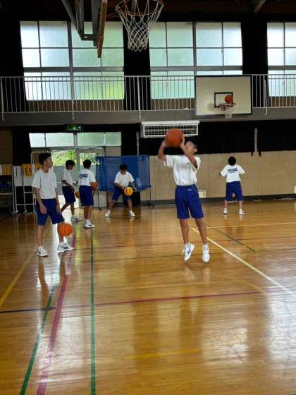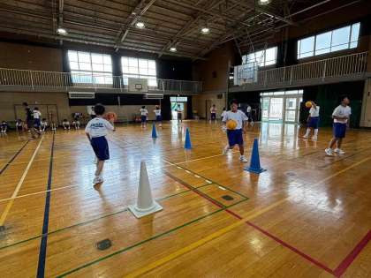 バスケットボールをしています。築港中学校はバスケ部がないためほとんどが未経験者です。みんなで同じものをこなしていくとより達成感を味わうことができます。