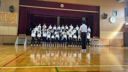 初めての全体合唱です。初めは少し様子を見ながら歌う様子が見られましたが、最後の合唱は少しレベルが上がりました。
