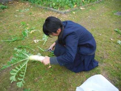 3年技術科「だいこんの収穫」