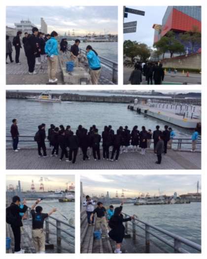 8:40 学校を出発、徒歩にて天保山キャプテンライン横の岸壁に到着