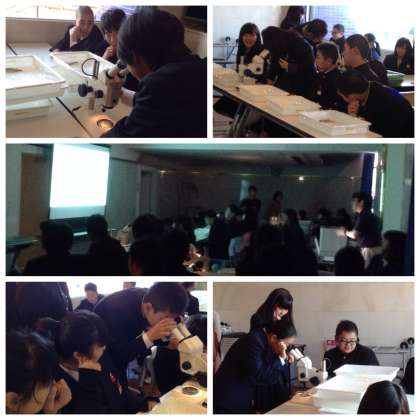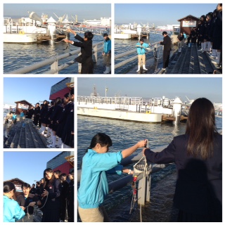 平成27年(2015年)12月15日(火)、昨日の2年生に引き続き3年生が海遊館での特別授業に参加しました。スタートの、代表者によるプランクトン採取から声援があがるなど、終始いい雰囲気で授業を進めることが出来ました。