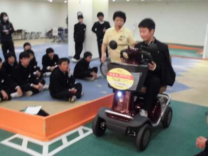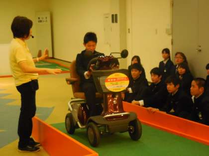電動カートの体験もしました。わずかな操作でスムーズな移動ができる事に驚いていました。こんな便利な乗り物がたくさん普及すればいいですね。