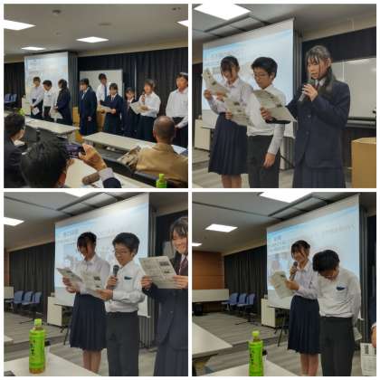 海遊館部です。水曜日の放課後、フォーラム「淀川河口域を考える会」に参加し、6月に参加した石干見漁についての発表をしました。たくさんの著名な方々を前にし、とても緊張した中学生たちでしたが、練習通り丁寧な発表ができました。会場の皆さまも温かく見守ってくださいました。