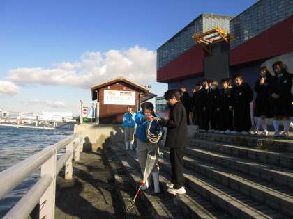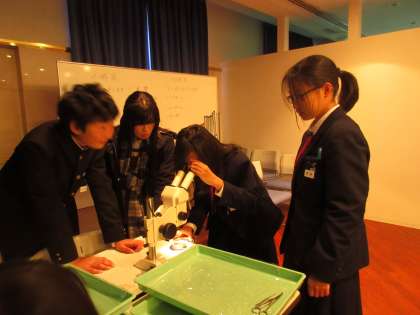 平成27(2015年)12月17日(木)、1年生が海遊館特別授業に参加しました。2,3年生と同じように代表者が岸壁からプランクトンを採取し、飼育員さんの誘導でレクチャールームに移動し、観察をしました。子ども達は楽しみにしていたようで、われ先と顕微鏡をのぞきこみプランクトンを観察していました。