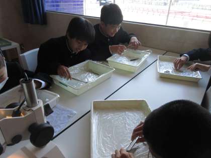 カタクチイワシの解剖実習では、初めてということもあってか苦戦をしている生徒もいましたが、楽しそうに取り組んでいました。