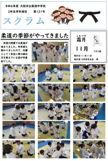 2年生学年通信スクラム第121号は体育の柔道授業のようすです。