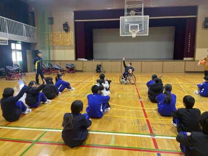 5.6時間目に車いすバスケットボール体験がありました。