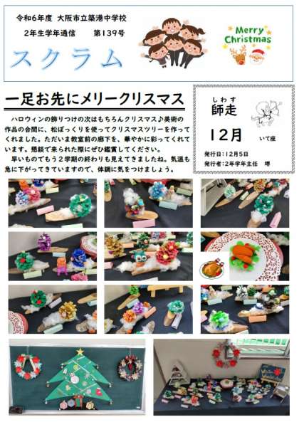 2年生学年通信スクラム第139号は、松ぼっくりのツリーです。