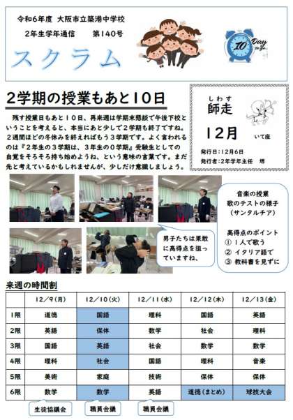 2年生学年通信スクラム第140号は歌のテストのようすです。
