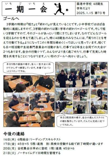 1年生学年通信一期一会第73号