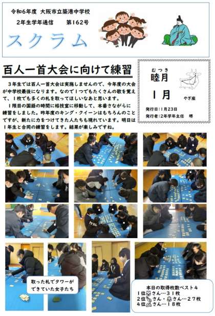 2年生学年通信スクラム第162号は今週金曜日に行う百人一首大会の練習です。