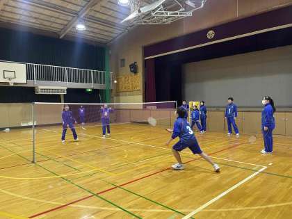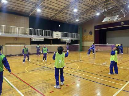 1年生と3年生が合同でバドミントンを行っています。