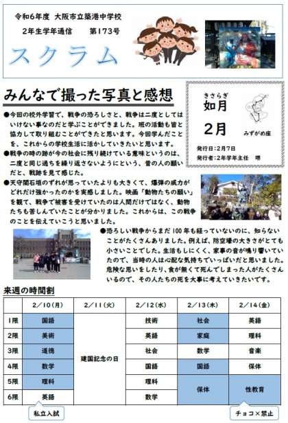 2年生学年通信スクラム第172号と、2年生学年通信スクラム第173号は、大阪の戦跡をめぐりました。