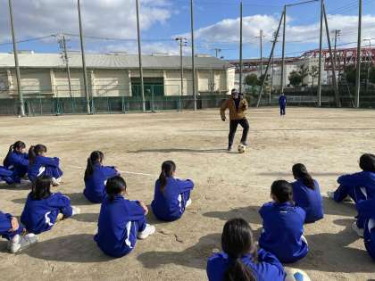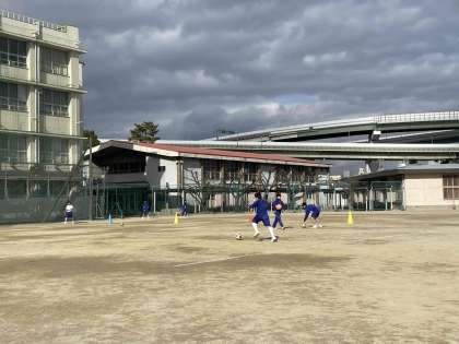 ボールを足で扱う練習を行い、ゲームを目標に取り組んでいます。