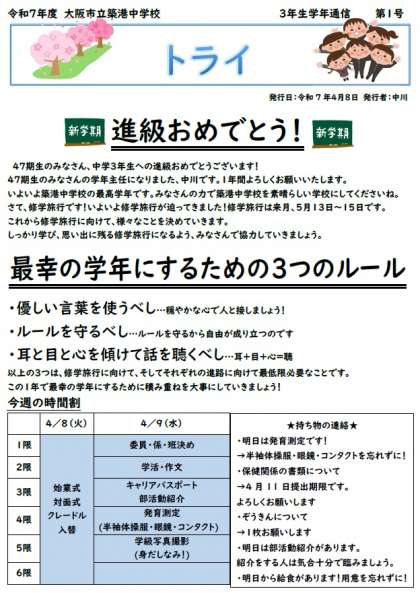 3学年通信トライ第1号です。いよいよ最高学年ですね。