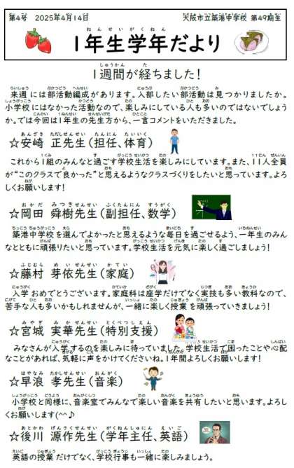 1学年だより第4号
