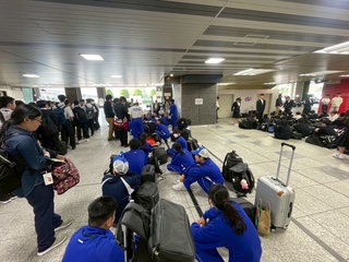 写真は、朝の集合時の様子です。大きな荷物を手に、生徒たちは少し緊張した表情ながらも、これから始まる旅に期待を膨らませているようでした。