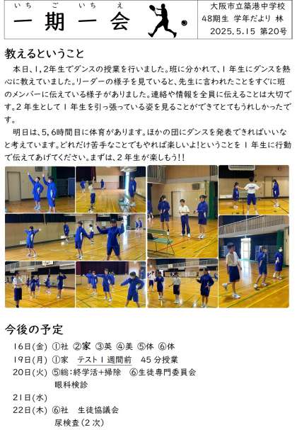 2年生だより一期一会第20号3年生が修学旅行のあいだ、2年生が1年生を引っ張ります。