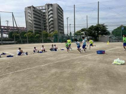 築港中学校では記録会と体育大会の2日間に分けて行います。開会式の練習から各種目の練習まで練習しました。