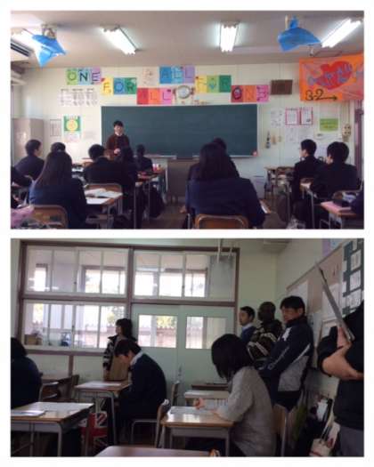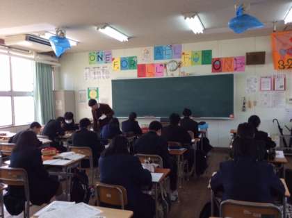 2月4日(木)6限目の寺西先生による3年2組A、英語授業の様子です。先生方も生徒の発音に熱心に耳を傾けていました。