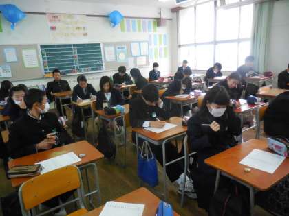 2月9日(火)1時間目、堺先生による道徳の授業がありました。題材は『学校や仲間に誇りをもつ』です。少し早いかもしれませんが1年後の卒業を見据え、今の学校やクラスのことについて考えました。一人一人が考えることで、また集団の雰囲気がより良く変わり、これから過ごす1年間が少しでも有意義なものになればいいですね。